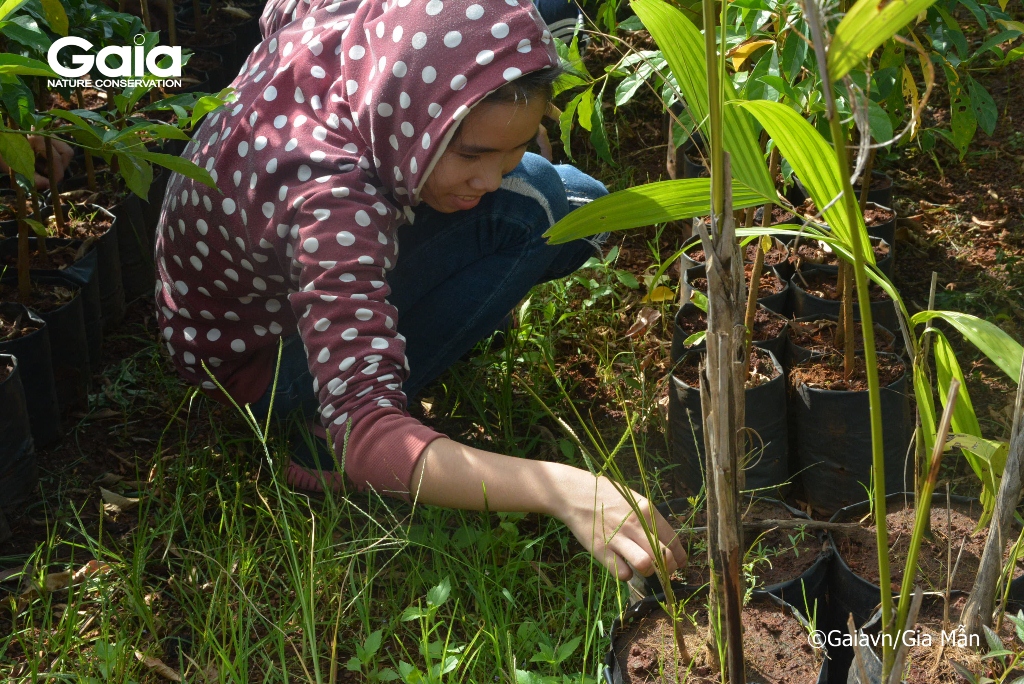 Học sinh tưới cây tại Vườn ươm cây rừng