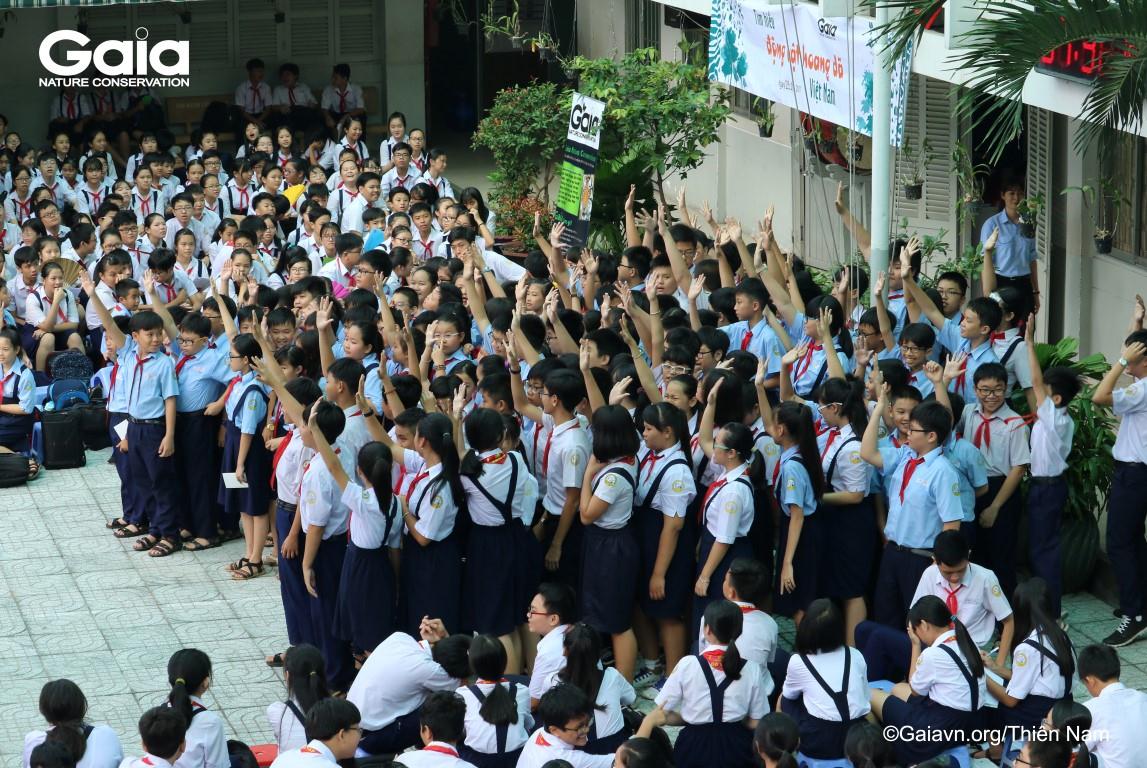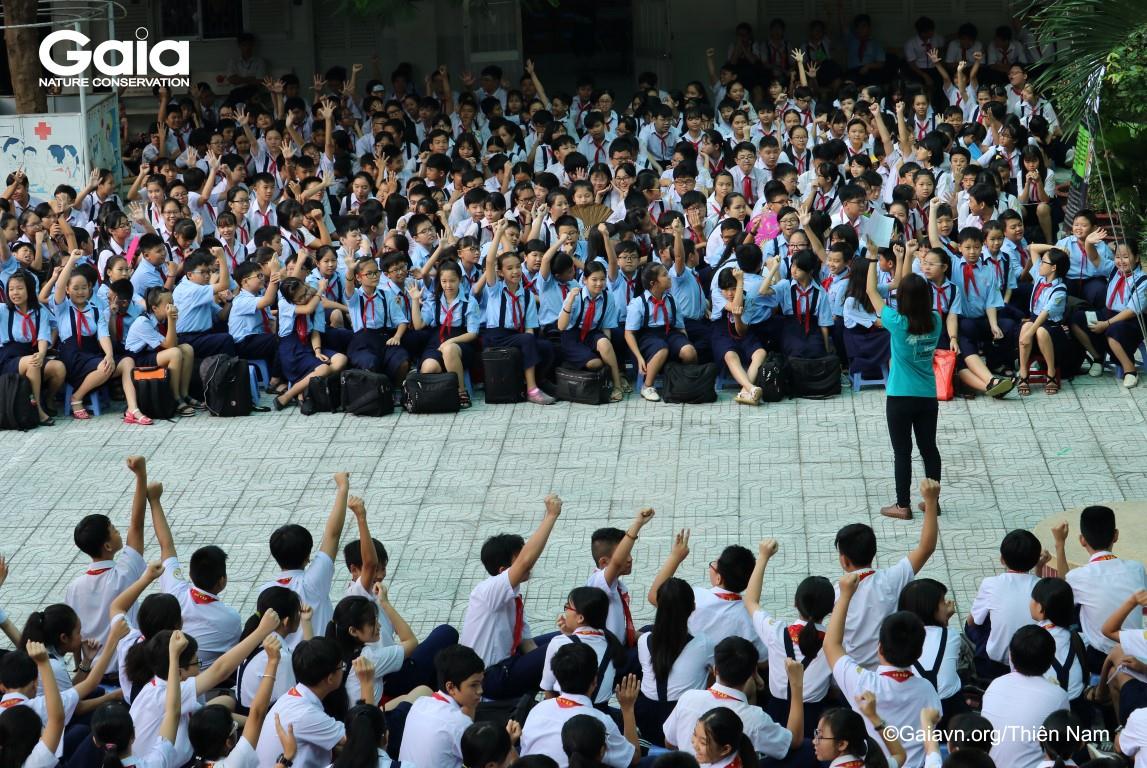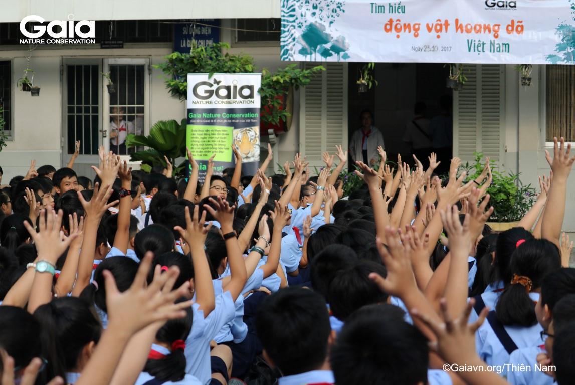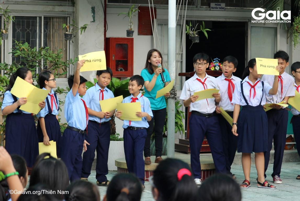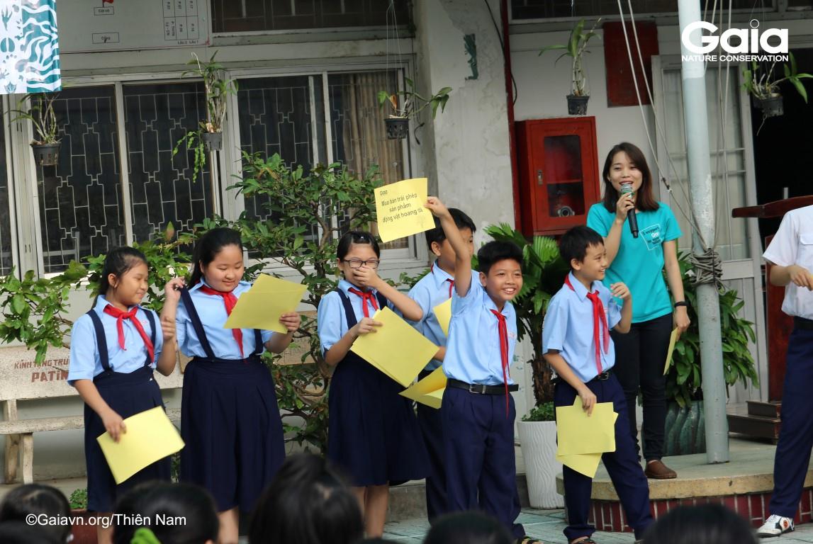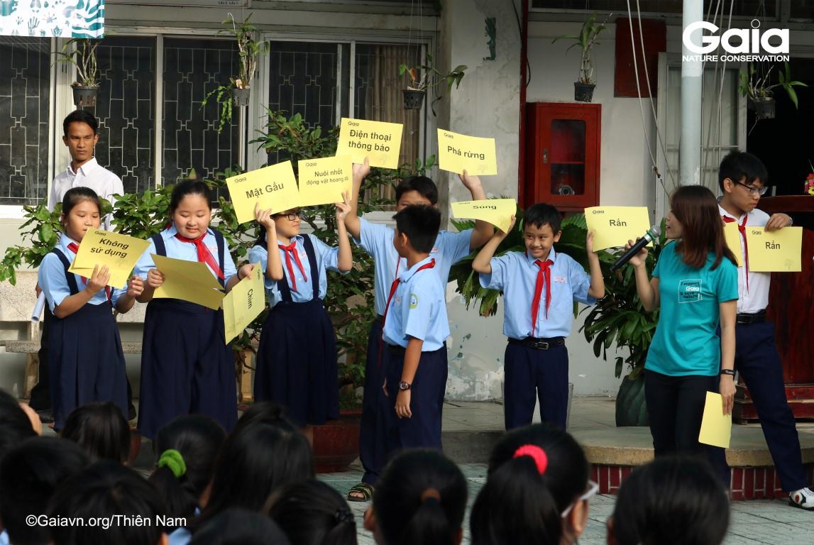 Học sinh hào hứng tham gia trò chơi tìm hiểu về buôn bán động vật hoang dã