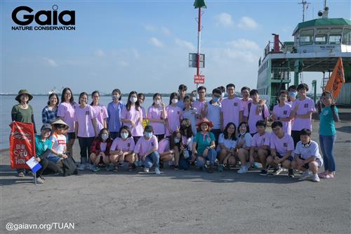 Các bạn học sinh cùng Gaia chụp ảnh lưu niệm tại bến thuyền