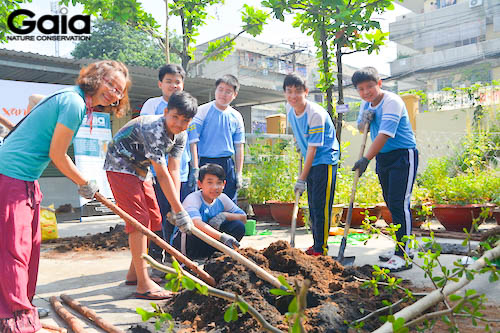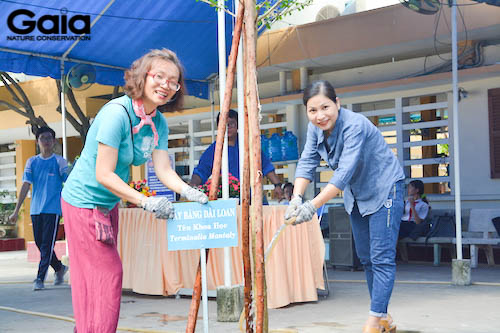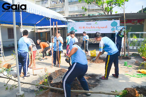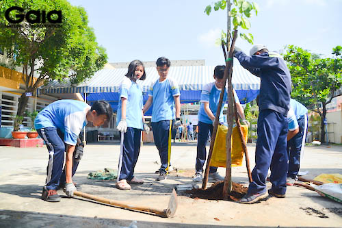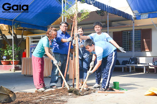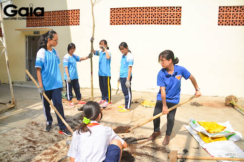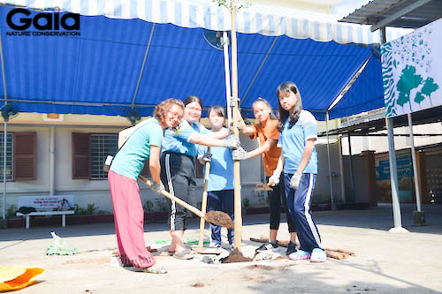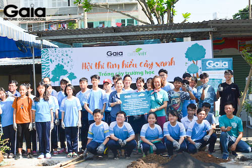Cán bộ Gaia háo hức trồng cây tại trường THCS Thanh Đa