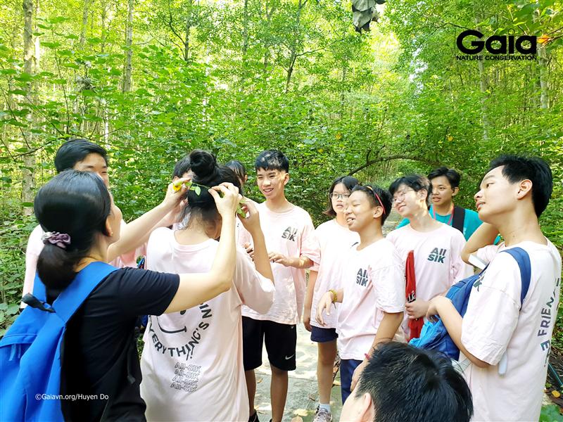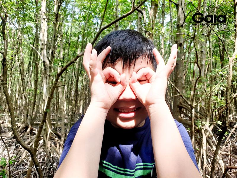 Học sinh hào hứng thực hiện thử thách Rừng đước kỳ thú.