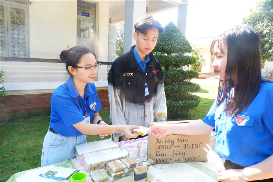 Ngoài ra, nhằm giúp các bạn học sinh thực hành sống xanh, BTC Wechange đã mở các gian hàng trợ giá sản phẩm xanh. Những gian hàng này khuyến khích sự thay đổi trên hành trình sống xanh của chính các bạn học sinh trong Trường THPT Chuyên Bình Long.