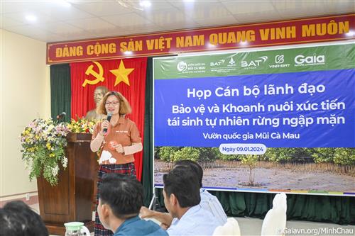 Ngày 09.01.2024 vừa qua, BAT Việt Nam, Trung tâm Bảo tồn Thiên nhiên Gaia và Vườn quốc gia Mũi Cà Mau đã triển khai chương trình Họp cán bộ lãnh đạo về Bảo vệ và khoanh nuôi xúc tiến tái sinh tự nhiên rừng ngập mặn. Chương trình có sự tham gia của gần 30 cán bộ lãnh đạo ở các cấp từ tỉnh đến thôn ấp thuộc nhiều bộ phận như công an, bộ đội, chính quyền địa phương và cán bộ Vườn quốc gia Mũi Cà Mau. Đây là hoạt động nằm trong dự án ESG về môi trường khoanh nuôi 80ha rừng Cà Mau trong 2 năm 2022 - 2023 do BAT Việt Nam tâm huyết triển khai cùng Gaia.