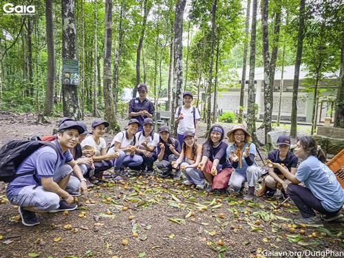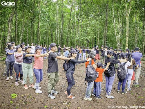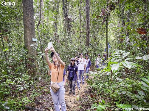 Buổi chiều, cả đoàn được trải nghiệm “tắm rừng”, một liệu pháp hồi phục sức khỏe được người Nhật gọi là “Shinrin-yoku”. Với sự hướng dẫn của chị Huyền Đỗ, cả đoàn thực tập kết nối với rừng bằng cả năm giác quan qua việc lắng nghe tiếng rừng xào xạc, ngửi mùi cỏ cây thanh mát, cảm nhận sự vững chãi gồ ghề của những thân cây lâu năm… Một trải nghiệm hòa mình vào thiên nhiên tuyệt vời giúp cả đoàn thư giãn tâm trí, gia tăng năng lượng tích cực và tình yêu cuộc sống. Cùng với hoạt động tắm rừng còn cả đoàn còn được khám phá rừng khô nhiệt đới, tìm hiểu về những loài động thực vật đặc trưng nơi đây.