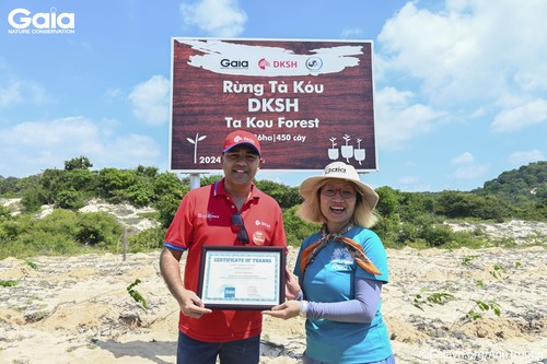 Ngày 10.08.2024, Công ty TNHH DKSH Việt Nam đã hoàn thành chuyến trồng rừng đầu tiên đầy ý nghĩa cùng Trung tâm Bảo tồn Thiên nhiên Gaia tại Khu bảo tồn thiên nhiên Tà Kóu. Tại đây, DKSH Việt Nam đã chung tay trồng thành công 450 cây thuộc các loài như Bằng lăng, Giáng hương, Xoay, Thiết đinh lá bẹ, Sắn me, Mận rừng, Cách và Nhãn rừng,… góp phần vào công tác bảo tồn thiên nhiên và bảo vệ đa dạng sinh học tại vùng đất đang bị sa mạc hoá này.