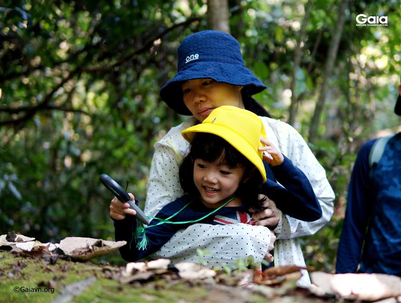 Tại Vườn quốc gia Cát Tiên, các gia đình được chiêm ngưỡng những tạo vật thiên nhiên kỳ thú cùng vô vàn câu chuyện hấp dẫn như cây dây leo khổng lồ, cây tung cổ thụ 400 năm tuổi, Cây đa bóp cổ khổng lồ, Vượn đen má vàng, Gấu ngựa, Khỉ đuôi dài… Các bạn nhỏ hào hứng cầm kính lúp nghiên cứu tạo vật bé nhỏ của rừng như nấm, rêu, bọ que. Câu chuyện về hành trình không may của Tê giác một sừng, Gấu ngựa, Vượn đen má vàng...dã đã khiến nhiều bạn xúc động, muốn hành động ngay để bảo vệ Gấu và các loài hoang dã.