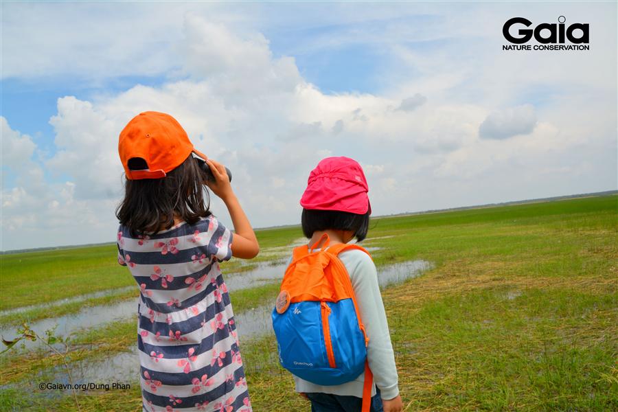 Các gia đình được nhìn thấy nhiều loài chim quý hiếm như Diệc lửa, Trích cồ, Cổ rắn, Diệc xám,… tìm kiếm thức ăn trên đồng cỏ năng. Mọi người được trải nghiệm thiên nhiên bằng mọi giác quan như: sự mềm mịn lớp vỏ tràm, vị chua ngọt quả lồng đèn, mùi thơm lá tràm, âm thanh thiên nhiên. Mọi người vô cùng hào hứng khi đóng vai trở thành Sếu đầu đỏ truy lùng củ năng kim, tìm cây mai dương sinh vật ngoại lai nguy hại cho Vườn quốc gia Tràm Chim. Những hoạt động Gaia thiết kế giúp mọi người hiểu giá trị của hệ sinh thái Vườn quốc gia Tràm Chim và cùng Gaia bảo tồn thiên nhiên.