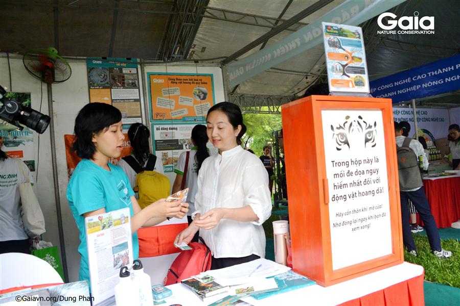 Tại gian hàng Gaia, người tham gia được nghe câu chuyện về loài thông vật quý hiếm đang trên bờ vực tuyệt chủng, thời kỳ đại tuyệt chủng lần thứ 6 đang xảy ra trên Trái Đất. Hào hứng phần chơi đoán tên động vật hoang dã, khám phá mối đe dọa với động vật hoang dã, trải nghiệm hộp gương bí ẩn. Gaia vui mừng khi có đông đảo người tham gia quan tâm đến các hành trình XANH của Gaia, đặc biệt là kỳ trại khám phá thiên nhiên – trải nghiệm du lịch Xanh, chương trình trồng rừng bảo vệ loài động vật hoang dã quý hiếm. “Bộ trò chơi động vật hoang dã quý hiếm” được Gaia giới thiệu ngày hội thu hút sự quan tâm rất nhiều phụ huynh và bạn thanh niên.