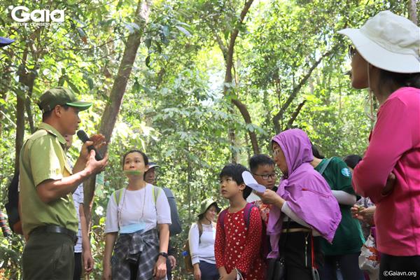 Buổi chiều, cả đoàn dành thời gian tìm hiểu thiên nhiên tại Khu Ủy Miền Đông Nam Bộ. Chuyến đi “TẮM RỪNG” và trải nghiệm thiên nhiên bằng nhiều giác quan giúp mọi người thêm hiểu hơn về vai trò của rừng với con người và hệ sinh thái. Nhóm IT và những người bạn được chạm vào những cây xanh kỳ diệu, được lắng nghe tiếng chim kêu, gió thổi, lá rơi, được nhìn thấy tán lá xanh, ánh nắng vàng rực rỡ, được nếm thử vị lá cây rừng chua chát, vị của không khí trong lành, được ngửi mùi hương rừng quyến rũ. Đặc biệt, hành trình khám phá rừng nhiệt đới kỳ thú mọi người còn bắt gặp ve vòi voi và rất nhiều dấu vết của động vật hoang dã.