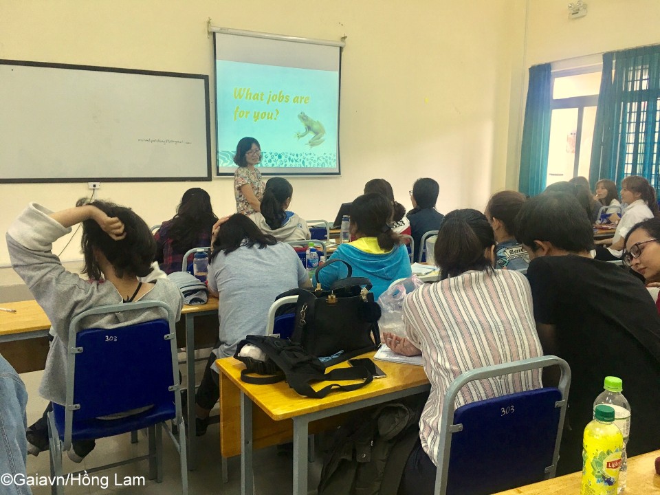 Tại buổi học này, Bà Đỗ Thị Thanh Huyền – Nhà sáng lập – Giám đốc Trung tâm Bảo tồn Thiên nhiên Gaia đã cung cấp cho các bạn sinh viên rất nhiều thông tin kiến thức bổ ích về bảo tồn thiên nhiên, hiện trạng và pháp luật bảo vệ động vật hoang dã tại Việt Nam. Các bạn sinh viên cũng được định hướng về một số ngành nghề, nơi làm việc liên quan đến bảo tồn thiên nhiên. Bài trắc nghiệm giúp sinh viên đánh giá thế mạnh bản thân và lựa chọn ngành nghề phù hợp trong tương lai.