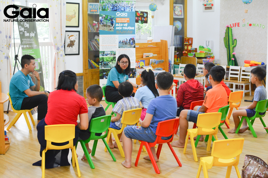 Ở mỗi buổi nói chuyện, các em đều được Cán bộ Gaia kể những câu chuyện thú vị về cây xanh và định nghĩa được thế nào là bão, lũ và các hiện tượng thiên tai. Bằng cách phân biệt bão, lũ, áp thấp nhiệt đới các em nhận thức được các vấn đề mà miền Trung đang gặp phải. Đồng cảm với những khó khăn mà các bạn nhỏ và cộng đồng Miền Trung đang đối diện, các bạn nhỏ nhất trí cùng nhau hành động bảo vệ miền Trung. Nhiều phương án thú vị đã được đưa ra như tặng quần áo, tặng thức ăn hay nhu yếu phẩm, các bạn nhỏ nhất quán Trồng cây gây rừng là biện pháp tốt nhất để các bạn miền Trung hạn chế chịu tác động vào các năm tiếp theo.