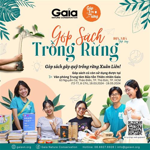 Nối tiếp sự thành công của chương trình Dọn nhà Góp cây Tết Giáp Thìn vừa qua, Gaia quyết định sẽ tiếp tục chương trình với phiên bản đặc biệt GÓP SÁCH TRỒNG RỪNG. Bạn có thể góp sách cũ tại Văn phòng Gaia. 100% lợi nhuận từ việc bán sách sẽ được dùng để trồng rừng Xuân Liên vào tháng 08.2024 (Xem thêm tại: bit.ly/rungxuanlien).