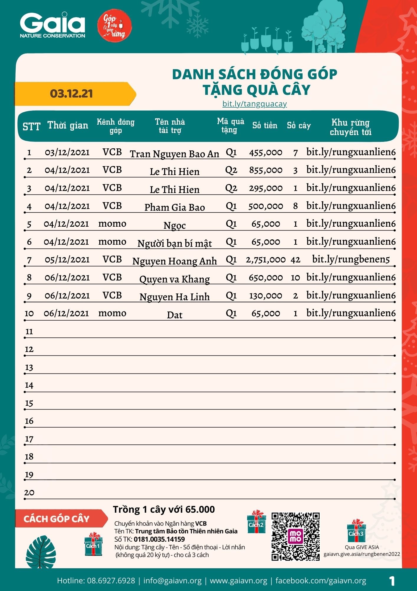 Xem toàn bộ danh sách góp cây Tặng quà cây tại đây (Đang cập nhật...)