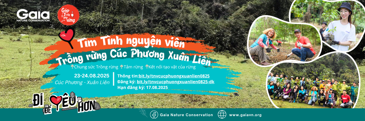 Trung tâm Bảo tồn Thiên nhiên Gaia kêu gọi những trái tim yêu thiên nhiên cùng Chung sức trồng rừng, góp sức tái sinh màu xanh tại Vườn Quốc gia Cúc Phương (Ninh Bình) và Vườn Quốc gia Xuân Liên (Thanh Hóa) – những cánh rừng đầu nguồn quý giá, nơi giữ nguồn nước, chắn lũ và là mái nhà của muôn loài.