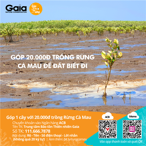 Gaia dự kiến sẽ tổ chức chương trình tham gia khoanh nuôi trồng rừng và Trải nghiệm Thiên nhiên tại Cà Mau vào tháng 10.2023. Mời bạn để lại thông tin tại đây để Gaia báo đến bạn nhé: bit.ly/dangkyquantamditrongrung