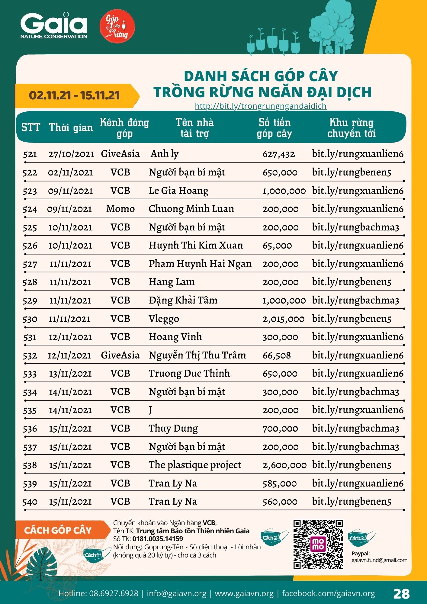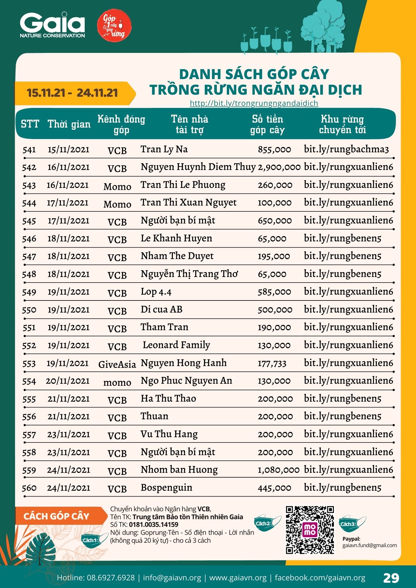 Xem toàn bộ danh sách góp cây Trồng rừng ngăn đại dịch tại đây.