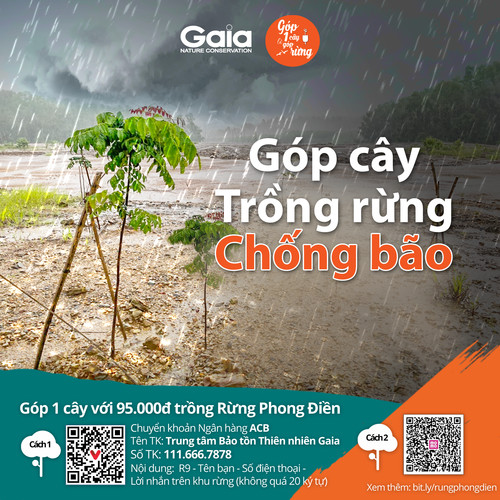 Mời bạn góp 1 cây với 95.000 đồng, cùng Gaia trồng rừng Phòng Điền, giảm thiệt hại bão lũ.